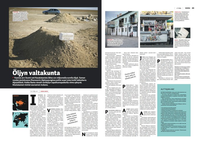 Vuonna 2011 Suomi osti Kazakstanista lähes 270 miljoonalla eurolla öljyä. Saman vuoden joulukuussa Zhanozenin öljykaupungissa poliisi avasi tulen kohti lakkoilevia öljytyöläisiä. Kukka Ranta vieraili verilöylyn tapahtumapaikoilla viime syksynä. Mustalasiset miehet seurasivat mukana.