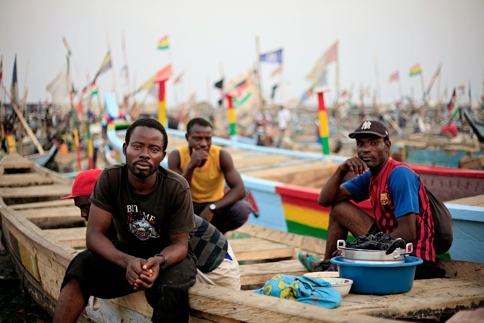 Ghana, Tema. Benjamin Na, 32, on kalastanut veljiensä kanssa Teman satamassa Ghanassa 12-vuotiaasta lähtien. Öisin merellä näkyy 20-50 kiinalaisalusta valokalastamassa laittomasti. Isot troolit puskevat paikallisten puuveneet pois ja vievät sekä kalat että apajapaikat, jopa aseilla ja vesitykillä uhaten.