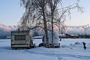 Tammikuisten kinosten keskellä sosiaalikeskus Sataman pihalla nököttää yksinäisiä asuntovaunuja. Reunimmaisessa nukkuu Caldararu ”Elvis” Marius yhdessä 6 muun henkilön kanssa.