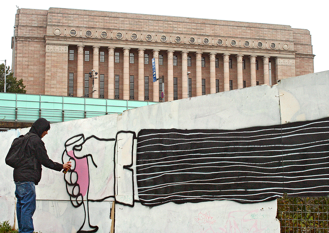 HKR-Tekniikan tulosryhmänjohtaja Kauko Nygrén on virkamiehelle harvinaisella innokkuudella vienyt töhryprojektia uusiin ulottuvuuksiin. Kulosaaren meluaidan ja Pasilan laillisten maalausten poistaminen tapahtui yksinomaan Nygrénin päätöksellä. Asiasta ei selvitystemme mukaan tehty päätöstä yleisten töiden lautakunnassa eikä kaupunginvaltuustossa.