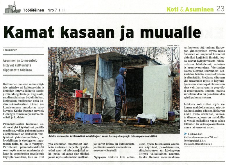 Liikkuva koti -näyttely 2.3.–7.8.2011 Kulttuurien museo, Helsinki Kukka Rannan valokuvanäyttely romanisiirtolaisista Helsingissä