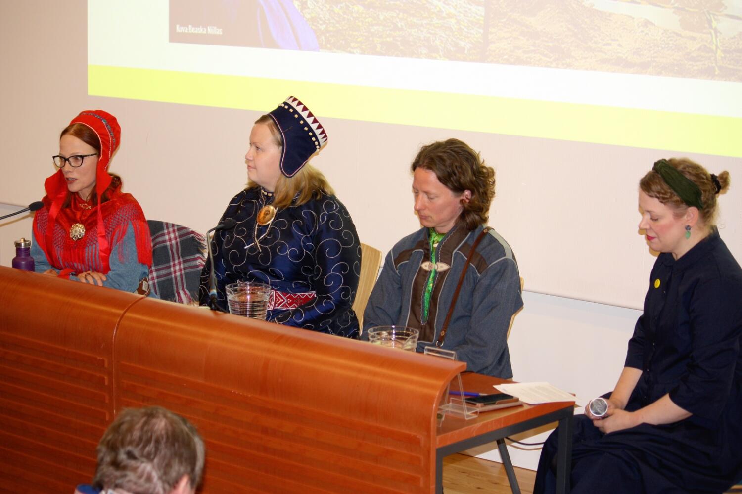 ”Kukka Ranta (Lapin yliopisto) kertoi valaisevin esimerkein saamelaisten osallistumisoikeuksista energiasiirtymään liittyvissä maankäyttösuunnitelmissa sekä siinä tapahtuvasta saamelaisten systemaattisesta sivuuttamisesta.”