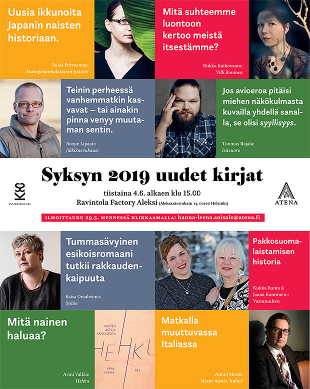 Kustantamo S&S ja Atena Kustannus 4.6.2019 Syksyn 2019 uudet kirjat